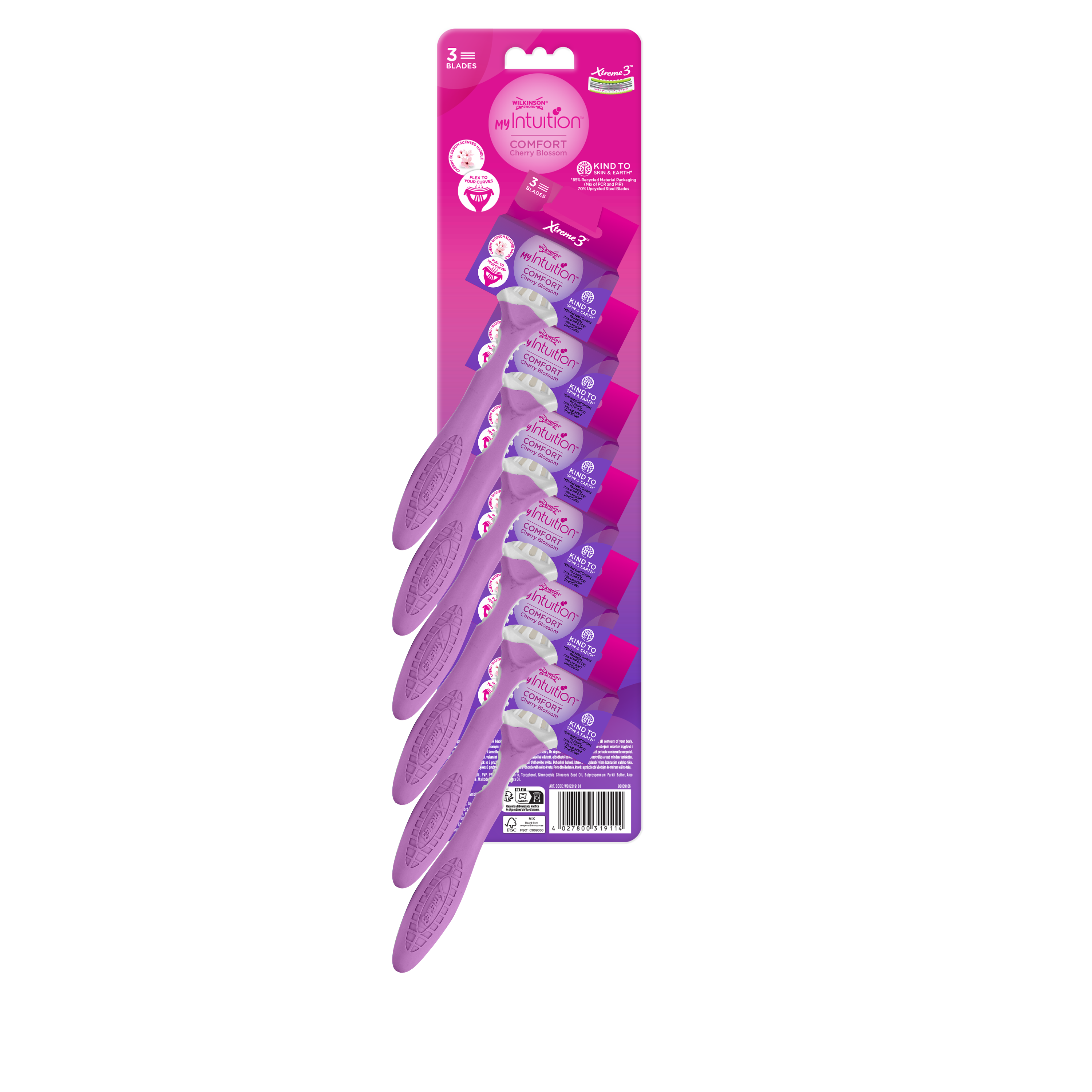 Wilkinson Sword MyIntuition Xtreme3 Comfort - единственная доступная на рынке одноразовая бритва с гибкими лезвиями. 3 гибких лезвия на плавающей головке обеспечивают гладкое бритье, идеально повторяя контуры тела. Увлажняющая полоска создает ощущение увлажненности и комфорта. Натягивающая полоска обеспечивает чистое бритье. Легкая профилированная ручка обеспечивает безопасное и ровное бритье.